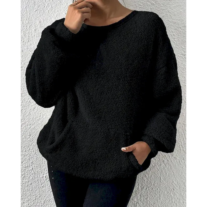 Womens-Hoodies-Plain-Streetwear-Casual-Long-Sleeve-Crew-Neck-Regular-Tops-Street-Holiday-Pocket-Black-Fall-Winter