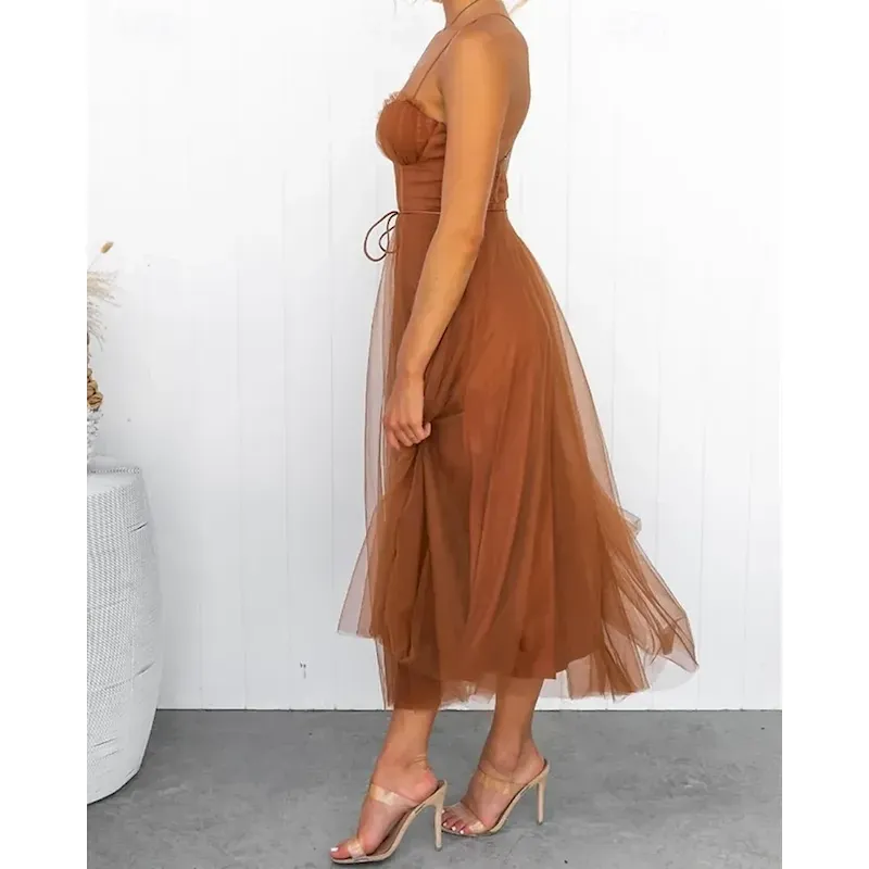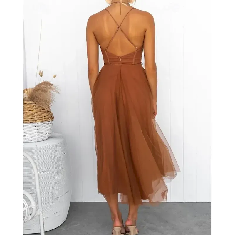 – Stay cool and stylish this summer with our polyester sleeveless dress- Designed for women, perfect for summer date nights or party- Versatile casual dress that can be styled up for a bridal shower- Featuring a trendy mesh design and flattering V neckline