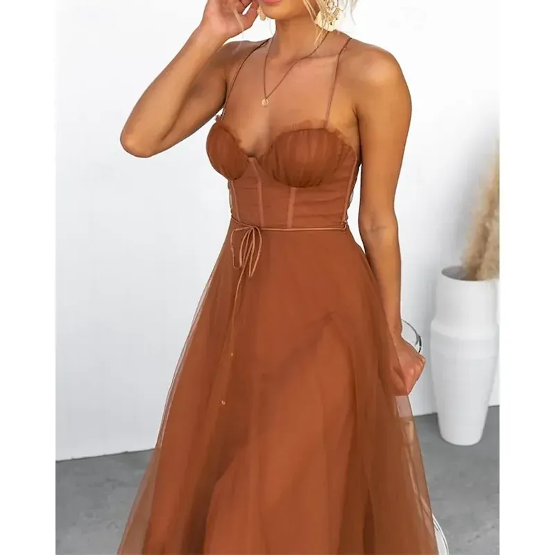 1.Dresses Type: Bridal Shower Dress Cocktail Dress Slip Dress Casual Dress Chiffon Dress – This type of dresses are most popular in summer, when you wear Chiffon, it makes you feel cooler.,2.Fabric: Polyester3.Gender: Women’s4.Design: Mesh – Generally refers to the thin, gauzy clothes, used in the sexy clothe, a bit like the material of lace.,5.Occasion: Party – Fashion dress when attending the party., Date6.Neckline: V Neck – V neck enhance temperament,can get model very good got-up face and neck line.,7.Sleeve Length: Sleeveless8.Season: Summer