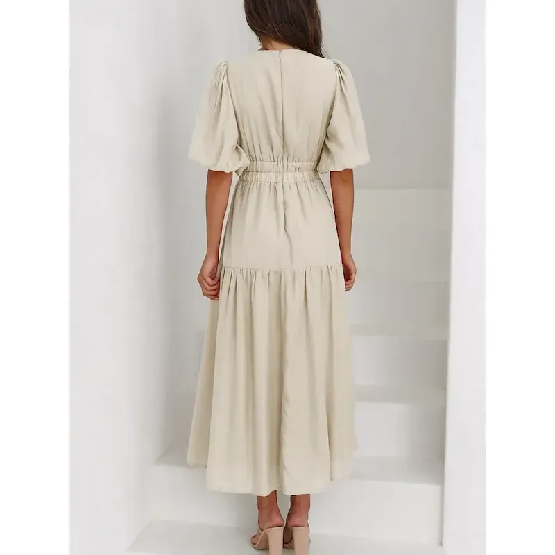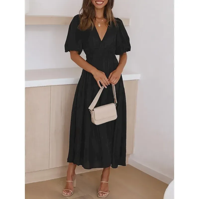 Womens-Maxi-Dress-Casual-Dress-Swing-Dress-Basic-Casual-Vacation-Daily-Regular-Fit-Plain-Short-Sleeve-V-Neck-Black-Green-Apricot-Light-Blue-Summer