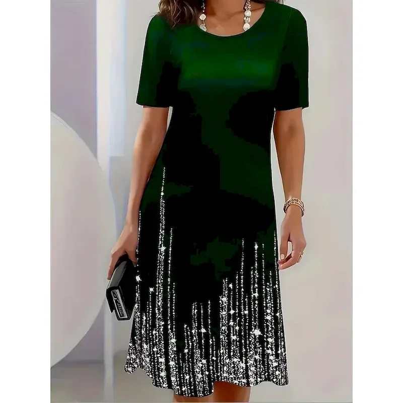 Womens-Midi-Dress-Elegant-Party-Evening-Crew-Neck-Short-Sleeve-T-Shirt-Dress-Tee-Dress-Shift-Dress-Casual-Formal-Daily-Regular-Fit-Floral-Abstract-Short-Sleeve-Crew-Neck-Black-Blue-Green-Spring