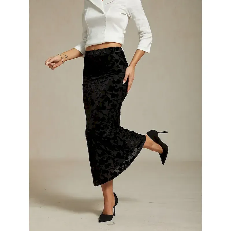 Women’s Skirt Trumpet / Mermaid Elegant Vintage Maxi High Waist Skirts Stretchy Black Spring Velvet