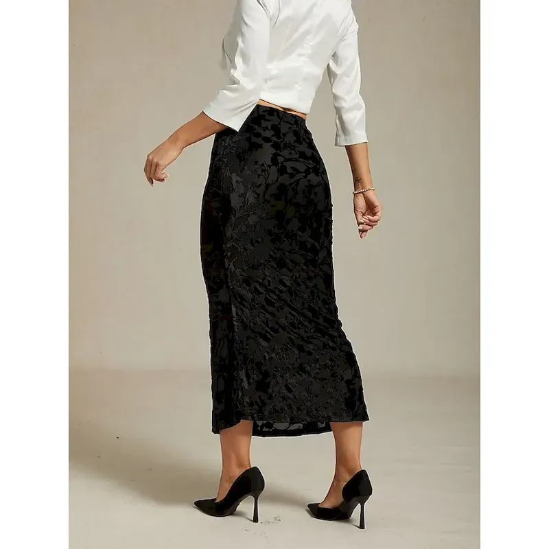 Womens-Skirt-Trumpet--Mermaid-Elegant-Vintage-Maxi-High-Waist-Skirts-Stretchy-Black-Spring-Velvet